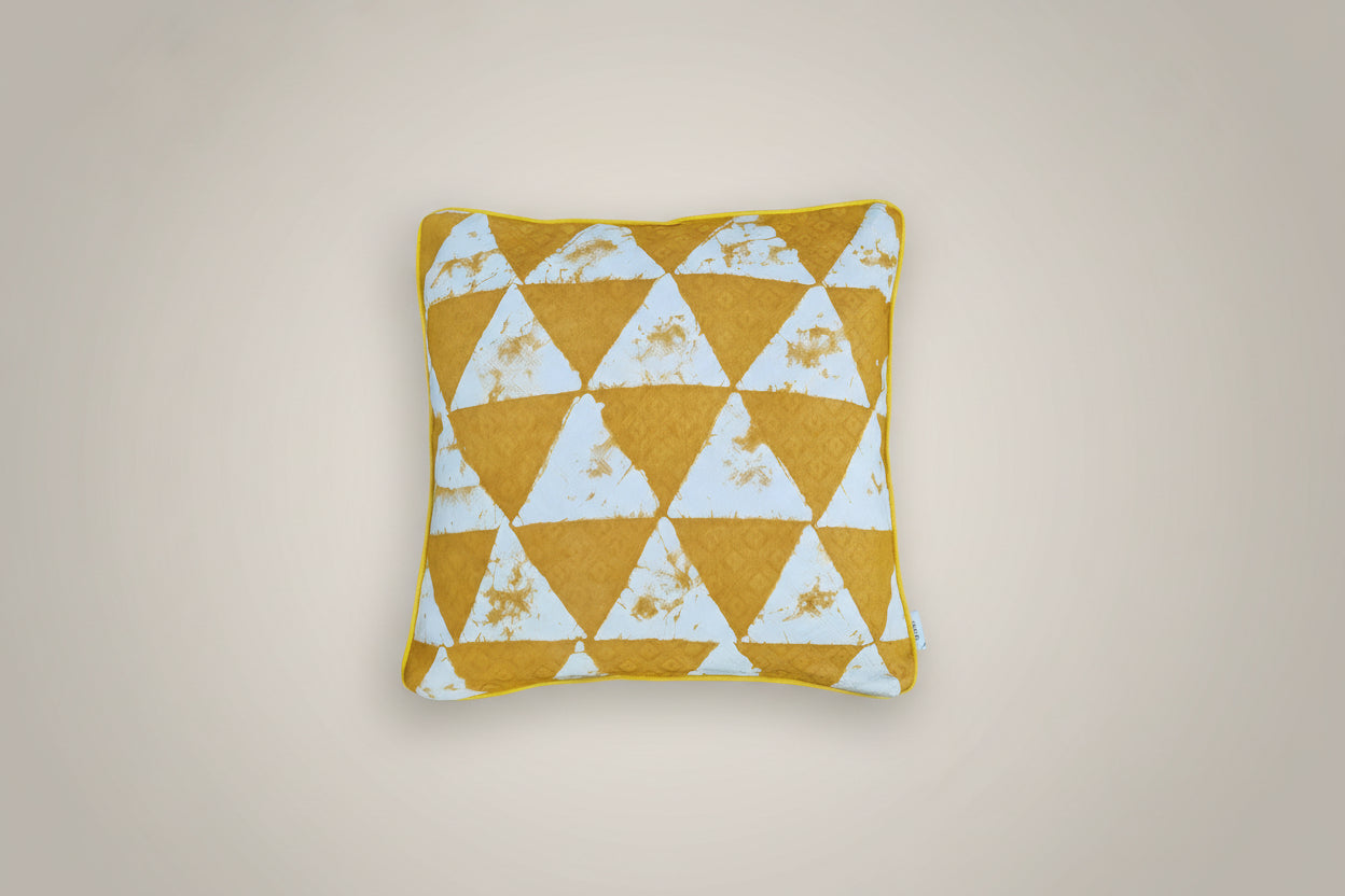 yellow and white triangular batik cushion cover